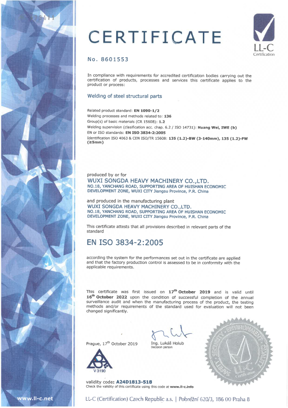Wuxi Songda Heavy Machinery Co., LTD, was established in 2010, with around 120 employees, the company is located in Wuxi Huishan District Yanqiao Economic Development Zone, adjacent to Grand Canal, and also adjacent to Huning and Jinghu Expressway and Wuxi International Airport, has excellent geographical location and transport conditions.